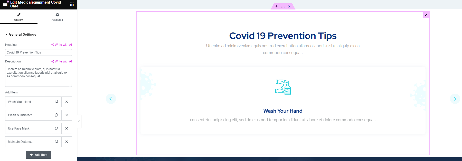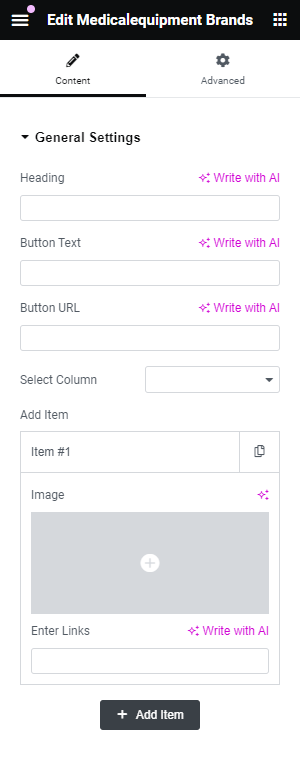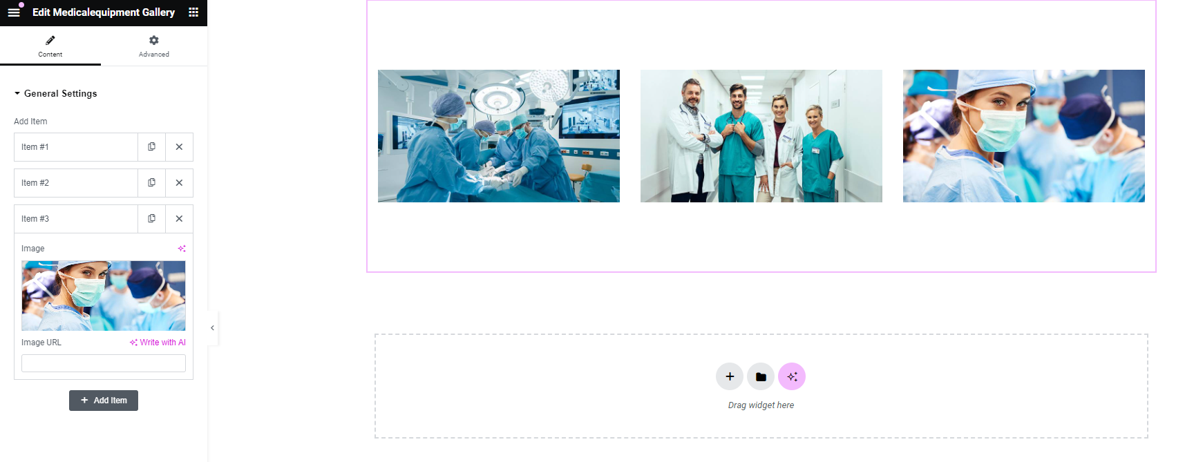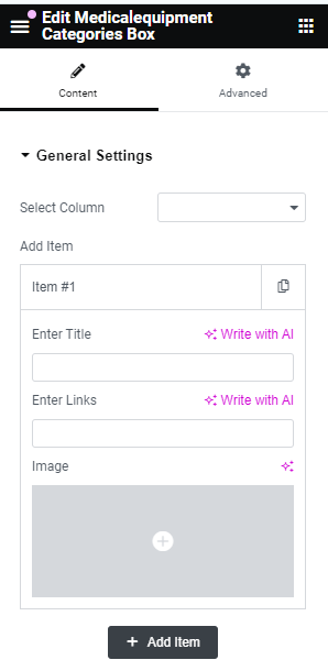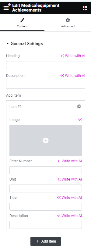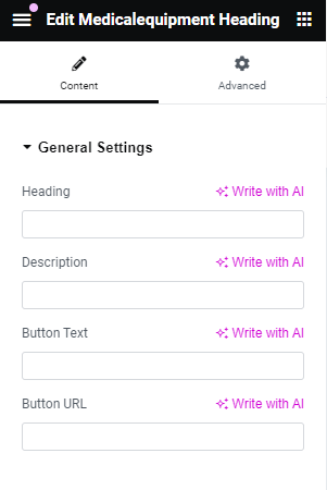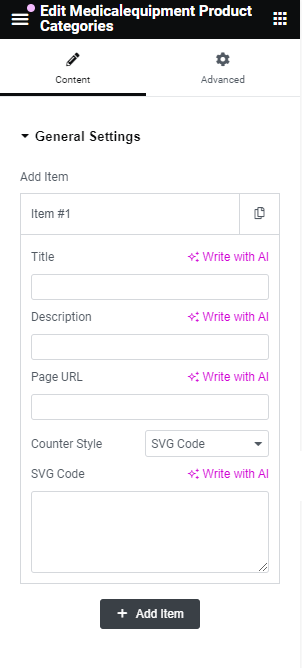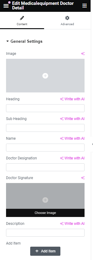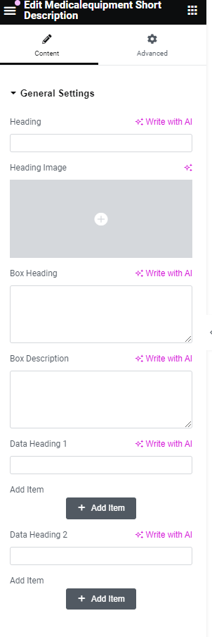 After adding title of the page click on Edit with Elementor button, you will get custom built shortcodes under MedicalEquipment Widget Section.