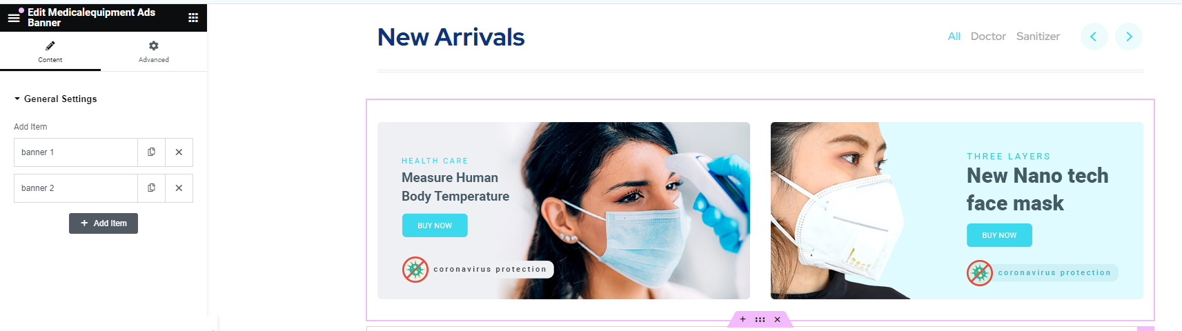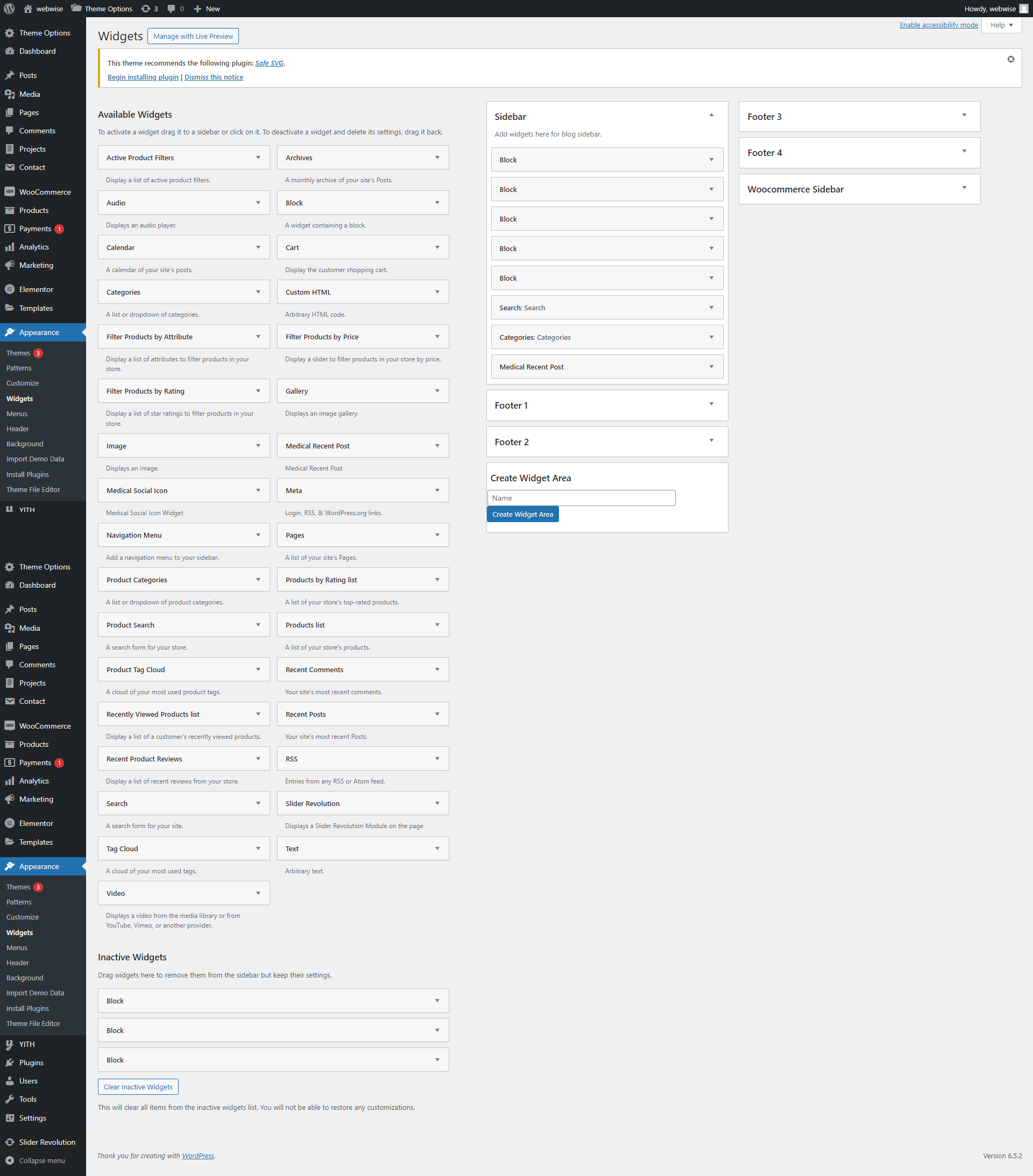 Medical Equipment - E Commerce WordPress Theme includes several custom widgets. All widgets are accessed in the Widgets section of the WordPress admin. Widgets can be added to any sidebar, footer column.There are various fields and settings present to choose for each individual widget all are self explanatory. You can put as many widgets as you want inside of a sidebar or footer.