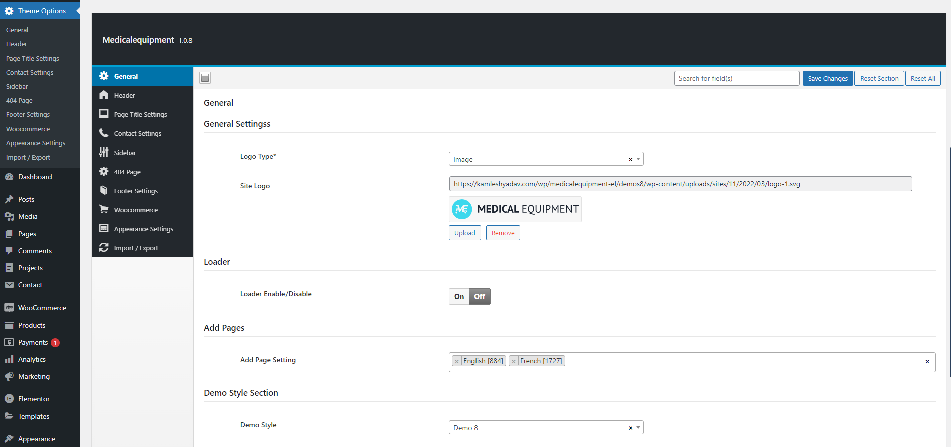 General settings consist of logo and loader setting option.
