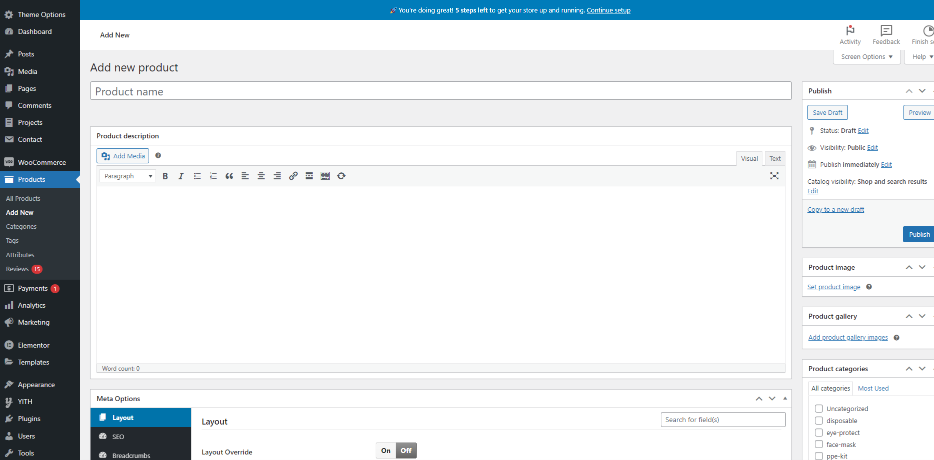 Navigate to WordPress dashboard >> Products >> add new