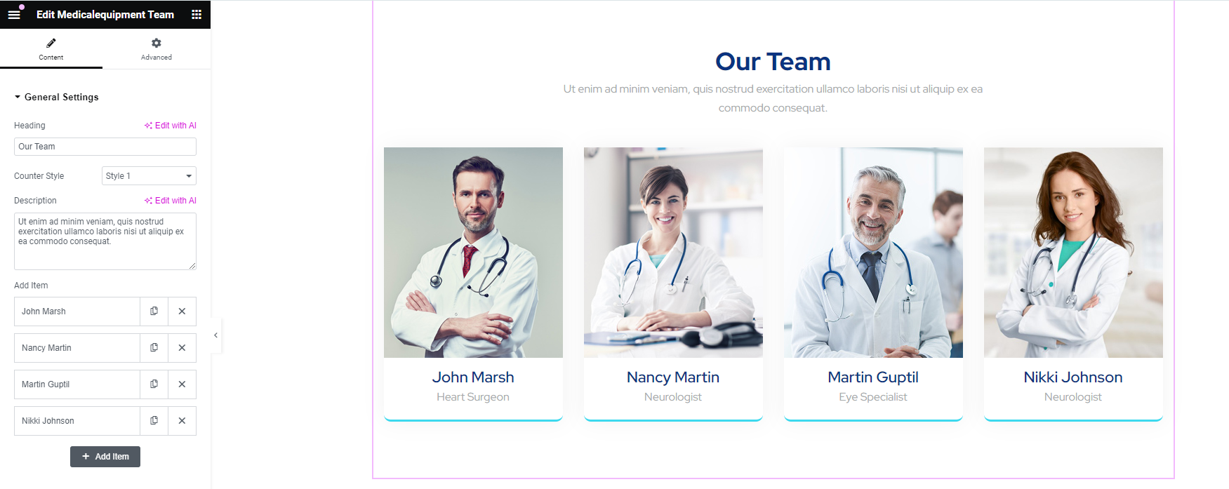 With this shortcode, you can show doctor details.