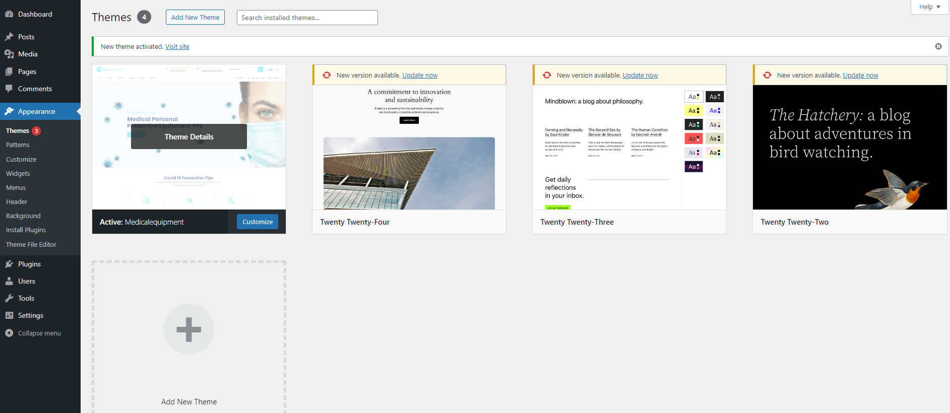 Step 4 – Navigate to the wp-dashboard and then activate the newly installed theme by going to Appearance > Themes and clicking the Activate button.