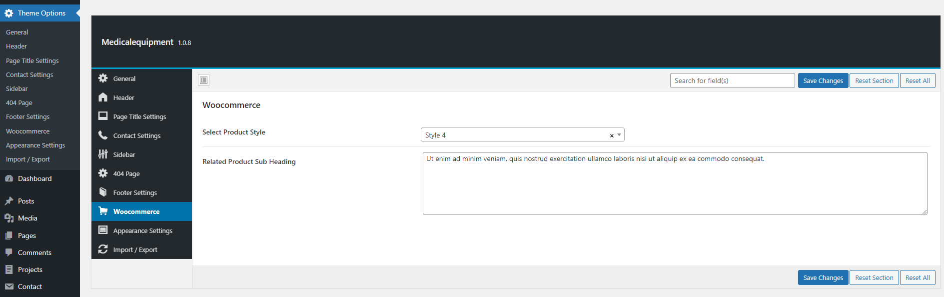 WooCommerce setting consist of the Product Style and Product Sub Heading. User can select the desired product style and enter the sub heading.